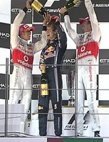 J. Button, F. Alonso and M. Webber. The Spanish is world champion at this time |