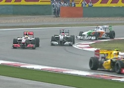 L. Hamilton takes in one operation two places with A. Sutil & S. Vettel |