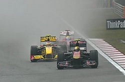 M. Webber, is in trouble with his car : he must live the place to his team-mate and to L. Hamilton |