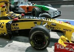 Into the pits, times are hard : R. Kubica and A. Sutil have an accident while N. Rosberg looses a wheel