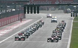 F. Alonso and M. Webber are missing their start : J. Button takes the lead