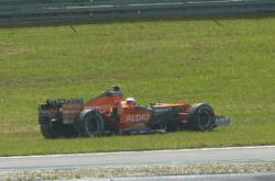 Safety-car comes in, V. Liuzzi is just behind and avoids a crane