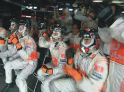H. Kovalainen, G. Fisichella and L. Hamilton who wants to get into the points.